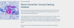 | MEDIA AND GAMES INVEST PÅ PARETOS GAMING CONFERENCE